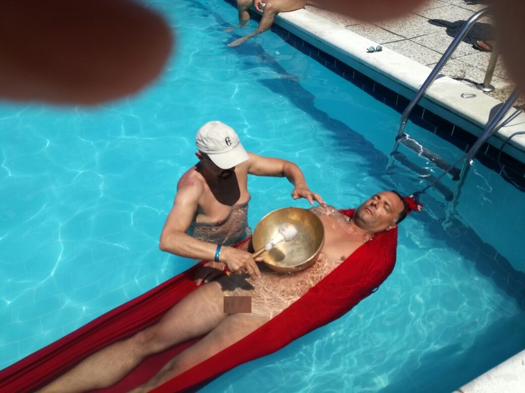· Tecniche di meditazione con campana tibetana in acqua su amaca