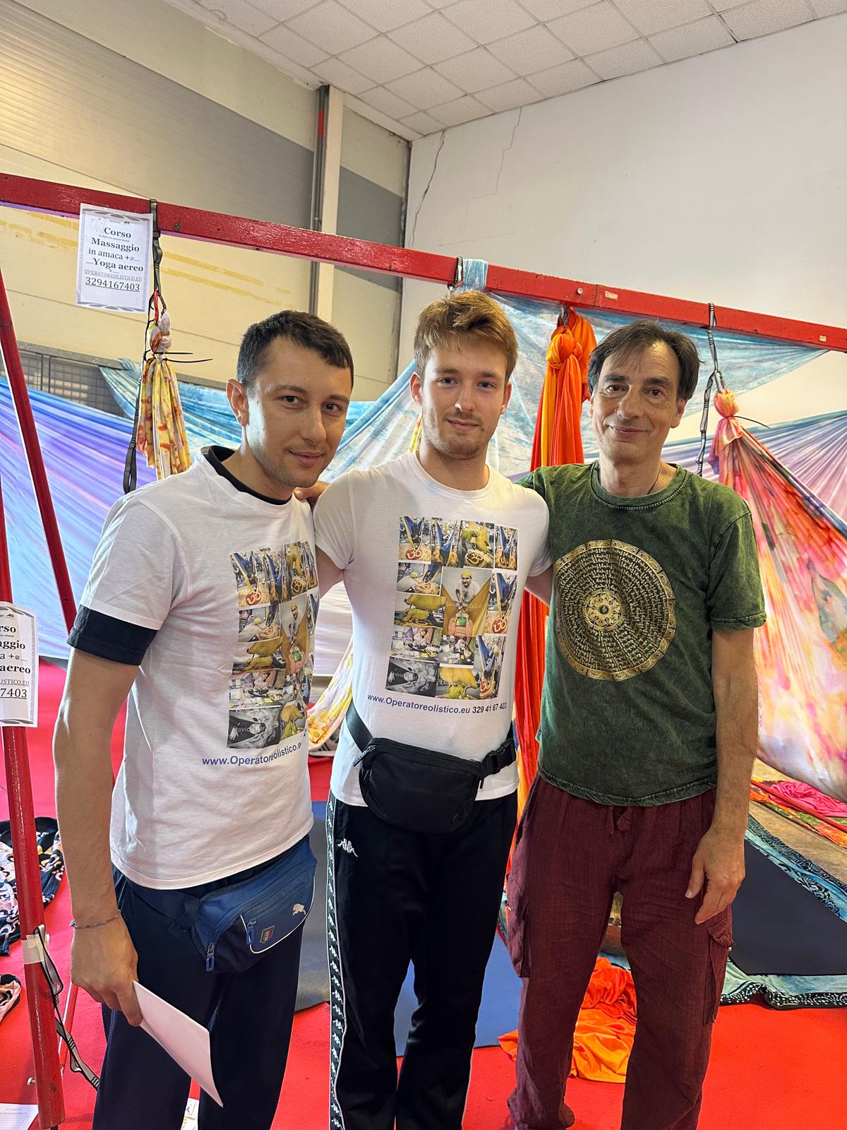 TEMPI: 3 ore durante la fiera dell oriente padiglione yoga e massaggi valbonesi dal venerdi fino al Week end. È un corso intensivo che riguarda tutti gli aspetti delle asana sia singole che di coppia di yoga della Yoga aereo su amaca Valbonesi ® metodo VALBONESI® A chi è adatta questa certificazione? a tutti ma i presupposti per il corso sono una certificazione medica di sana e robusta salute . Il corso è adatto a quelli che guardano per applicare ed approfondire la loro conoscenza ad una forma adattata di yoga eareo , yoga di coppia, o yoga per bambini. Che cosa imparerai al corso ? PROGRAMMA : La salute e la sicurezza in amaca norme Prevenzione di lesione Salubrità, sicurezza e messa a punto dell’oscillazione Come eseguire tutte le 1500 posizioni sia attive che no sul supporto aereo trampolino amaca VALBONESI® . Come eseguire le asana sia da solo che in coppia . Come strutturare e classe di yoga aereo o un trattamento in amaca Valbonesi ® . Come modificare e regolare correttamente gli studenti sulle amache Valbonesi ® brevettate da dott. Enrico Valbonesi Voli e figure acrobatiche – dal livello semplice a quello più tecnico Inversioni di coppia realx in amaca Benefici: Compressione discale zero durante l’inversioni,che permettono il sistema circolatorio e linfatico di ripristinare stimolando lA maggiore flessibilità muscolare Riduzione della tensione muscolare attraverso tecniche di auto massaggio. Rafforzamento della muscolatura di sostegno “core Muscles”. Rafforzamento della muscolatura degli arti superiore ed inferiore. Una maggiore consapevolezza cinestesica, l’ottimizzazione della gestione dell’equilibrio(recettori sensoriali)migliorando l’agilità. Aumento della mobilità articolare Allenamento cardiovascolare senza rischio Valorizzazione dell’autostima attraverso il processo di conquista e controllo della paura. Aumento della consapevolezza Miglioramento del riflesso L’apprendimento di nuove competenze: relax e visualizzazioni in amache e le meditazioni lievitanti. Il Corso è rivolto a tutti Programma : tempi Corso in fiera :